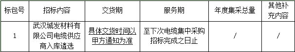 1.1項(xiàng)目名稱(chēng):武漢城發(fā)材料有限公司電纜供應(yīng)商入庫(kù)遴選